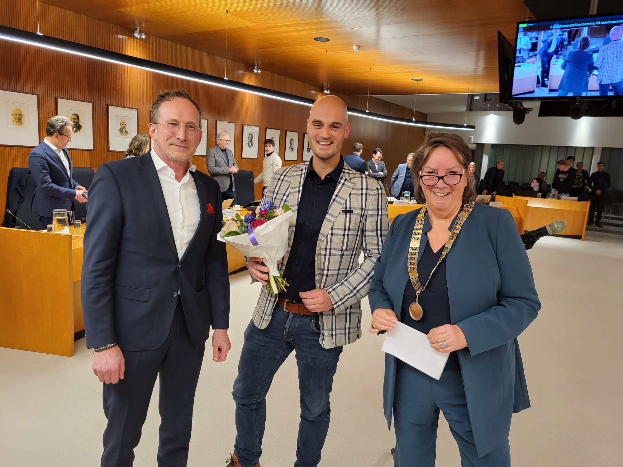 Harm van Zadelhoff geïnstalleerd als commissielid in het bijzijn van de waarnemend Burgemeester Agnes Jongerius en griffier Arnout van Kooij.