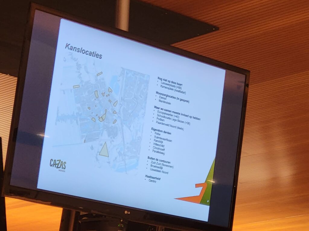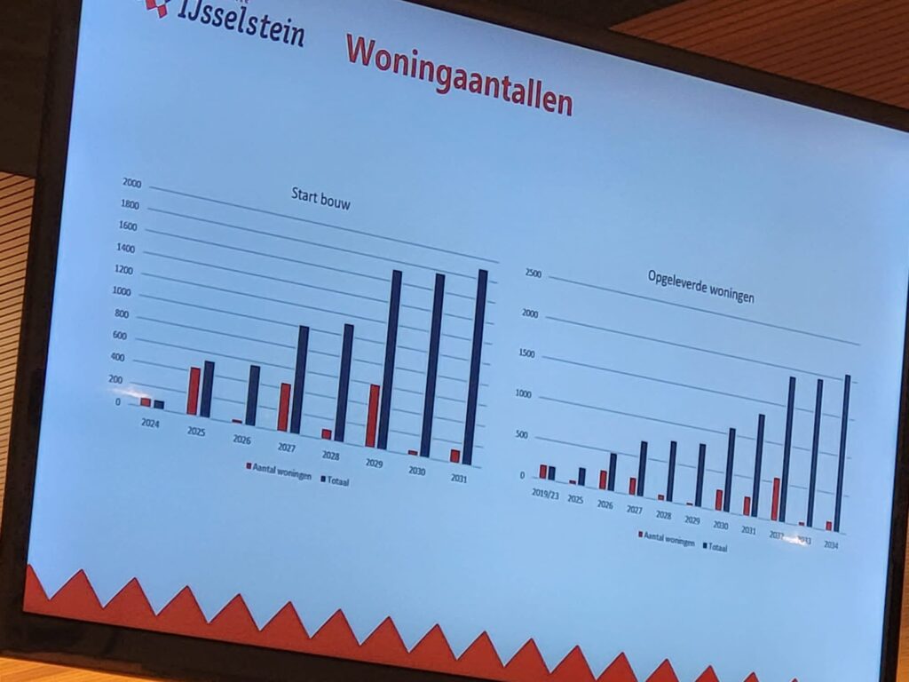 We kregen een presentatie met een overzichtelijke update van alle bouwprojecten in IJsselstein waaronder Hitteschild, Lage Biezen, Televisiebaan, Paardenveld en het Roba terrein.