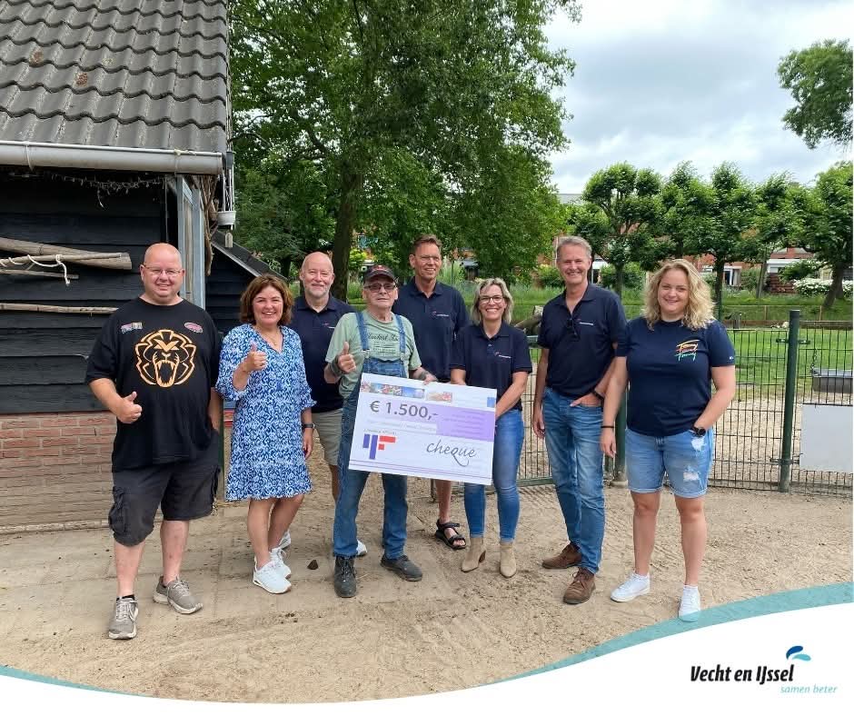 Tijdens de landelijke NLdoet heeft een enthousiaste groep van de lokale politieke partij in IJsselstein (LDIJ) zich ingezet voor de dierenweide op onze locatie Ewoud. Wat begon als een dag helpen in het zonnetje, groeide uit tot een prachtig gebaar van betrokkenheid. Dankzij de actie van LDIJ en de inzet van raadslid Cora Koehorst werd een donatie aangevraagd bij het IJsselstein Fonds. Deze werd op 28 juni feestelijk overhandigd aan Willem, die zich dagelijks inzet voor de dierenweide.